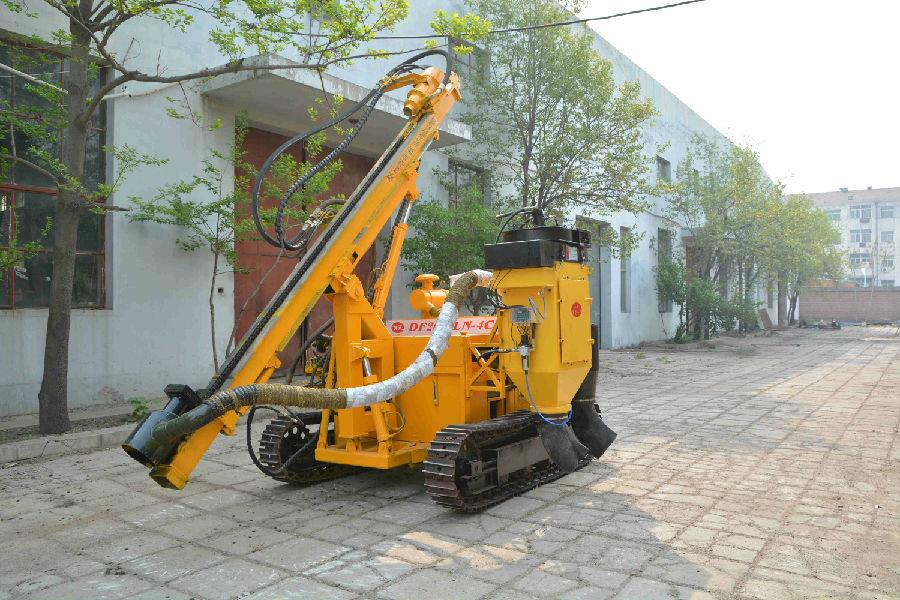 該係列履帶式潛孔鑽機主要用(yòng)於露天礦山及石方工程鑽鑿下向傾斜爆破孔作業。該(gāi)鑽機采用(yòng)內燃機(或電動機)油泵(bèng)組為動力(lì),液壓馬達行走、回轉,液壓馬達(dá)鏈條(tiáo)推進及(jí)提升,油缸擺角定位,傳動結構簡單,易損件少,耗氣量低。
